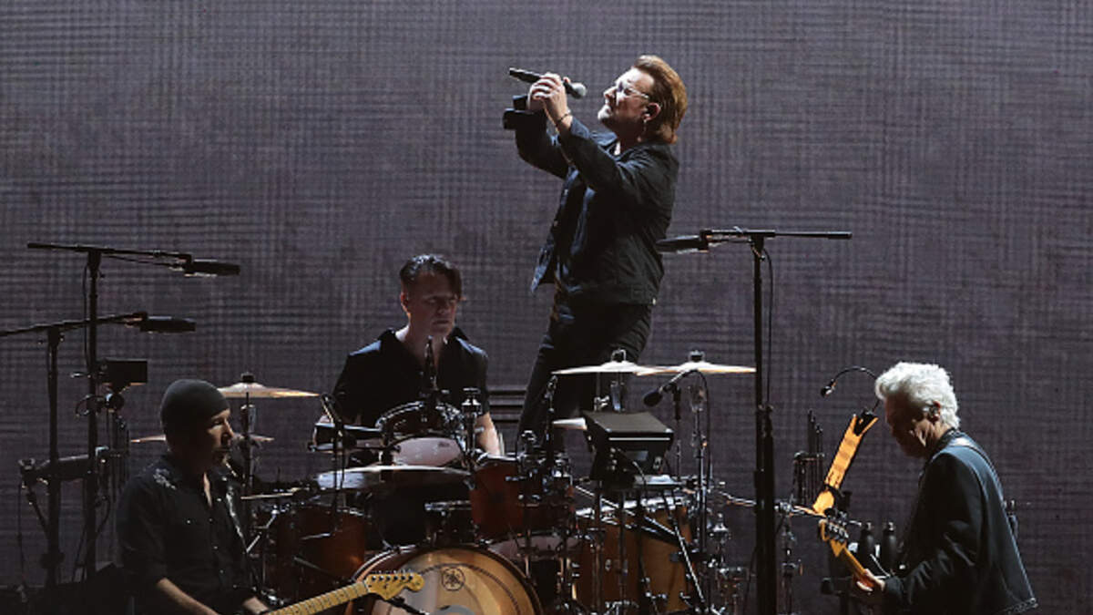 1991 - 30 years ago, U2 released Achtung Baby. The band was frustrated with each other during the recording of this album and arguing about the direction the sound should go - until an improvised writing of “One” lead to a breakthrough. The crashing, unrecognizable distorted guitars that open "Zoo Station" are a clear signal that U2 have traded their Americana pretensions for postmodern, contemporary European music. Drawing equally from Bowie's electronic, avant-garde explorations of the late '70s and the neo-psychedelic sounds of the thriving rave and Madchester club scenes of early-'90s England, Achtung Baby sounds vibrant and endlessly inventive. A deluxe edition comes out tomorrow to celebrate the anniversary. (Photo by Mark Metcalfe/Getty Images)