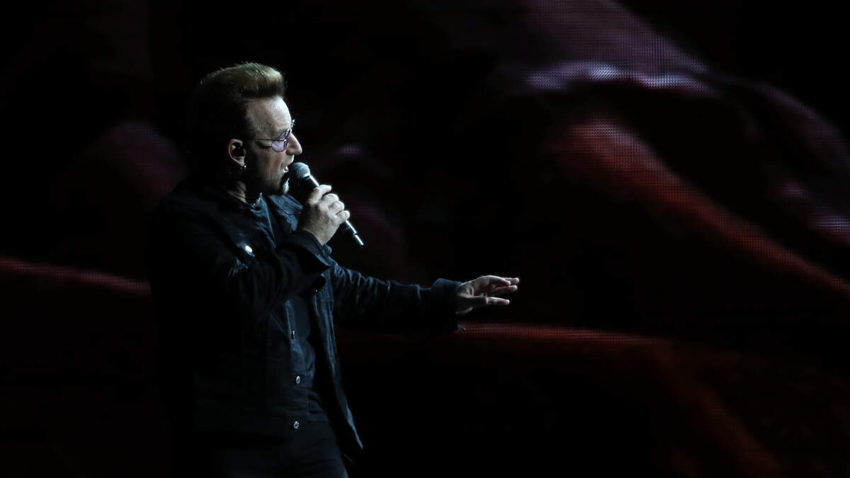 Backed by a band of Irish musicians including Hansard, Bono delivered an understated rendition of The Joshua Tree standout, with the singer also providing a harmonica solo while the accompanying musicians chanted “Hallelujah!”