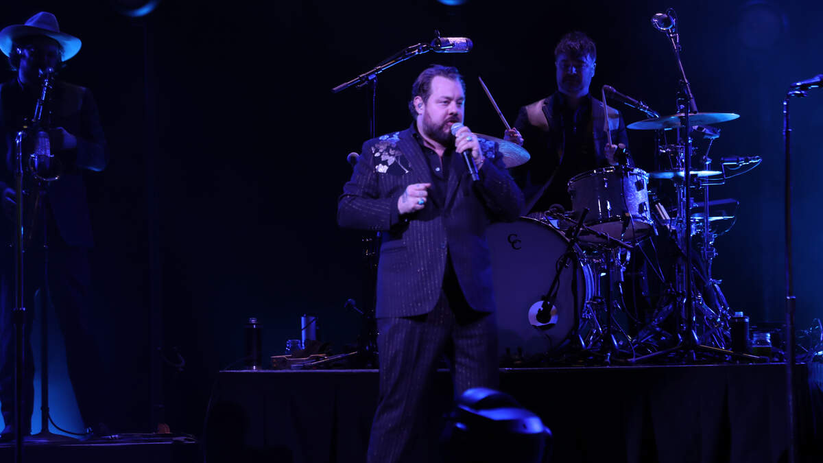 What an awesome moment! Rocky the mascot came on stage to let Nathaniel Rateliff hold the Denver Nugget's trophy at Red Rocks Tuesday night during S.O.B !!! see the video!