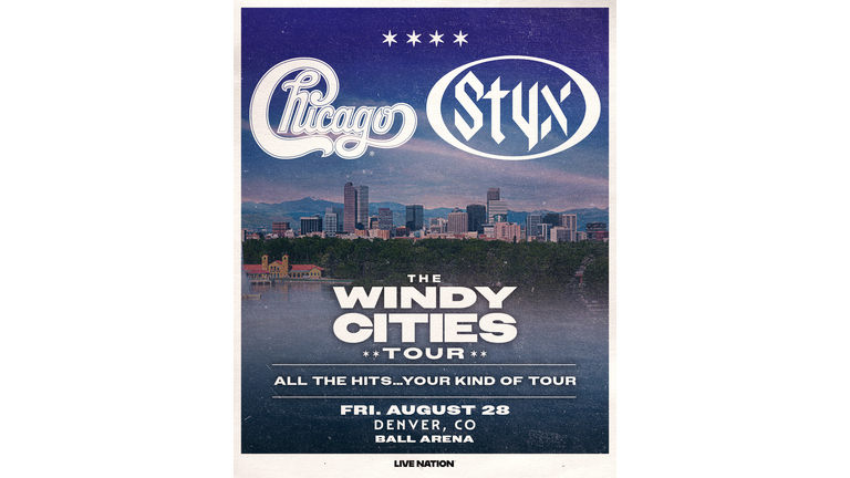 Chicago & Styx The Windy Cities Tour - All The Hits... Your Kind of Tour Ball Arena Friday, August 28, 2026 All Ages Doors: 6:30PM | Show: 7:30PM >>TICKETS