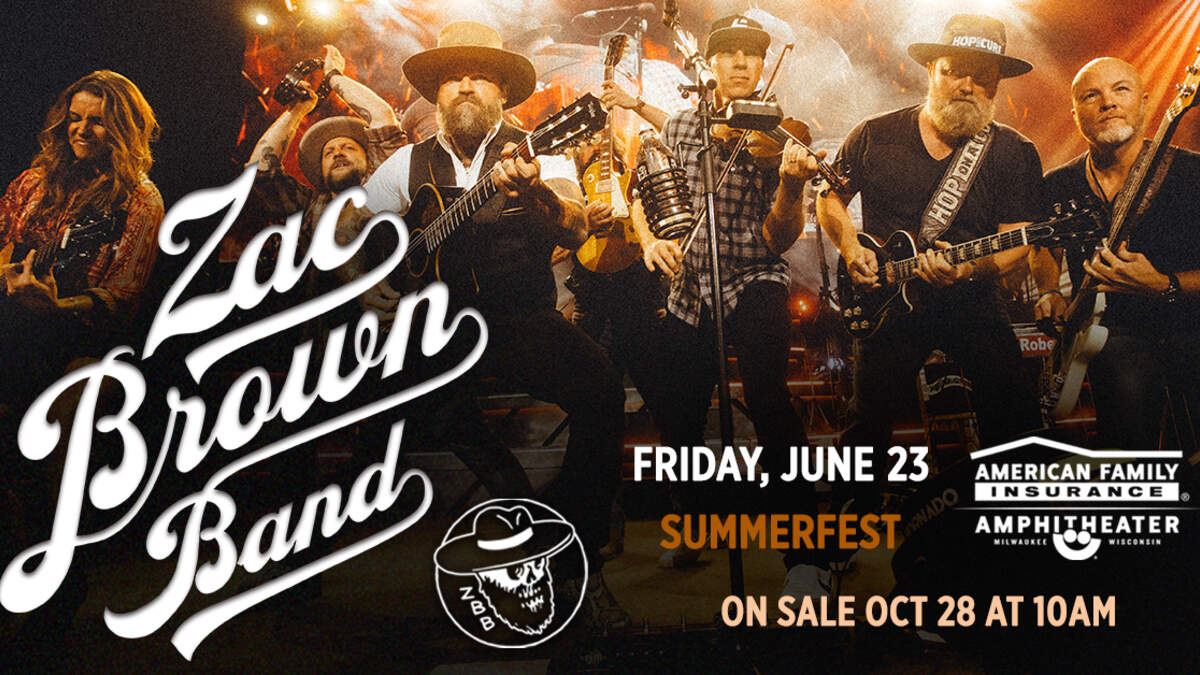 Zac Brown Band Summerfest Friday, June 23, 2023 American Family Insurance Amphitheater Tickets are on sale now Get more info here: https://www.ticketmaster.com/event/07005D46E53A5A91