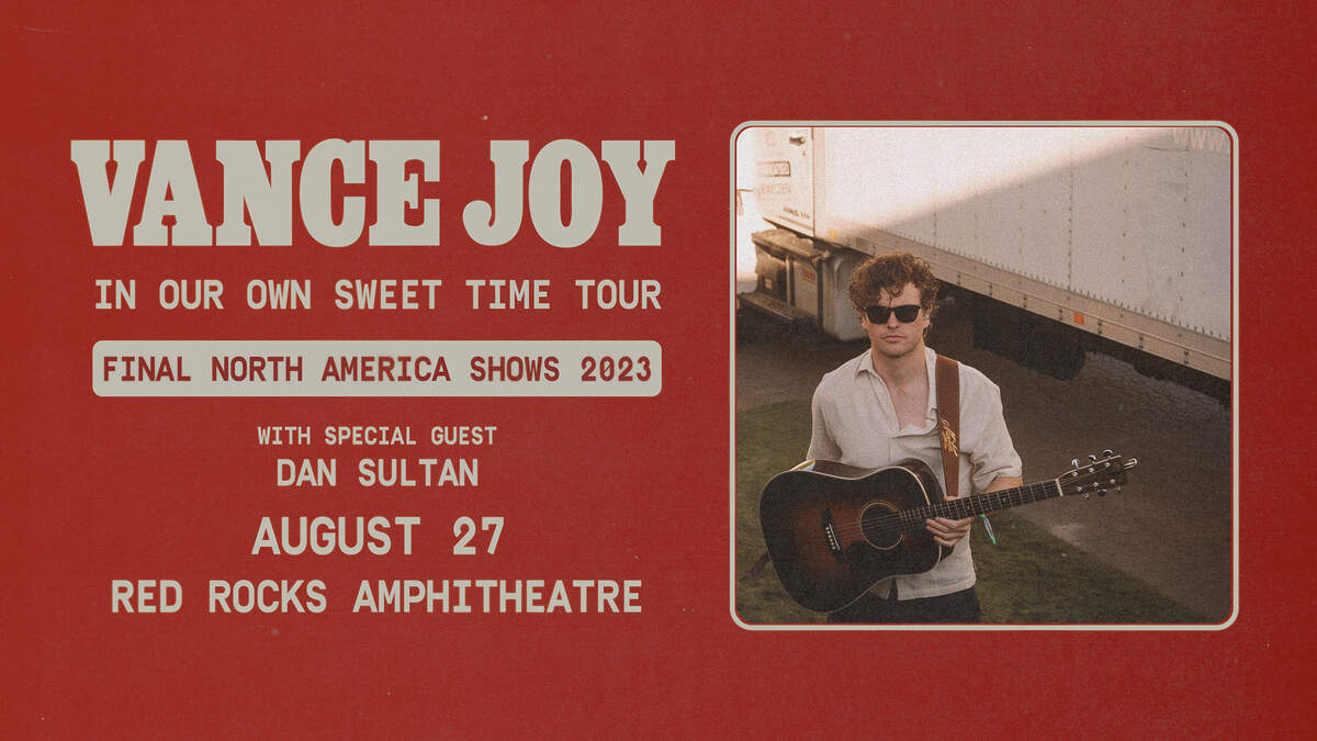 Photo: AEG PresentsVance Joy with Dan Sultan Red Rocks August 27, 2023 >>Tickets Presale: Wednesday, 02.15.23 @ 10AM - Thursday, 02.16.23 @ 10PM ((Password: VANCE23))