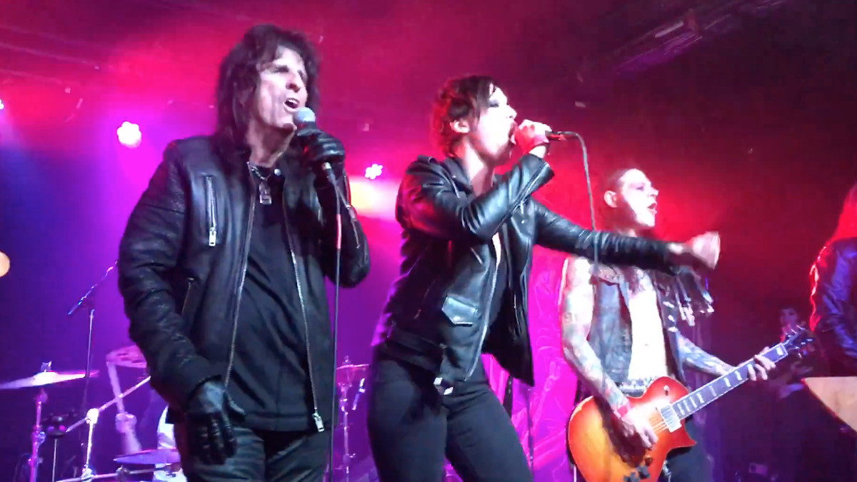 Shock rock legend Alice Cooper and Lzzy Hale of Halestorm joined Beasto Blanco on stage to perform Cooper's classic rebel anthem "School's Out" at a show in Nashville, TN.