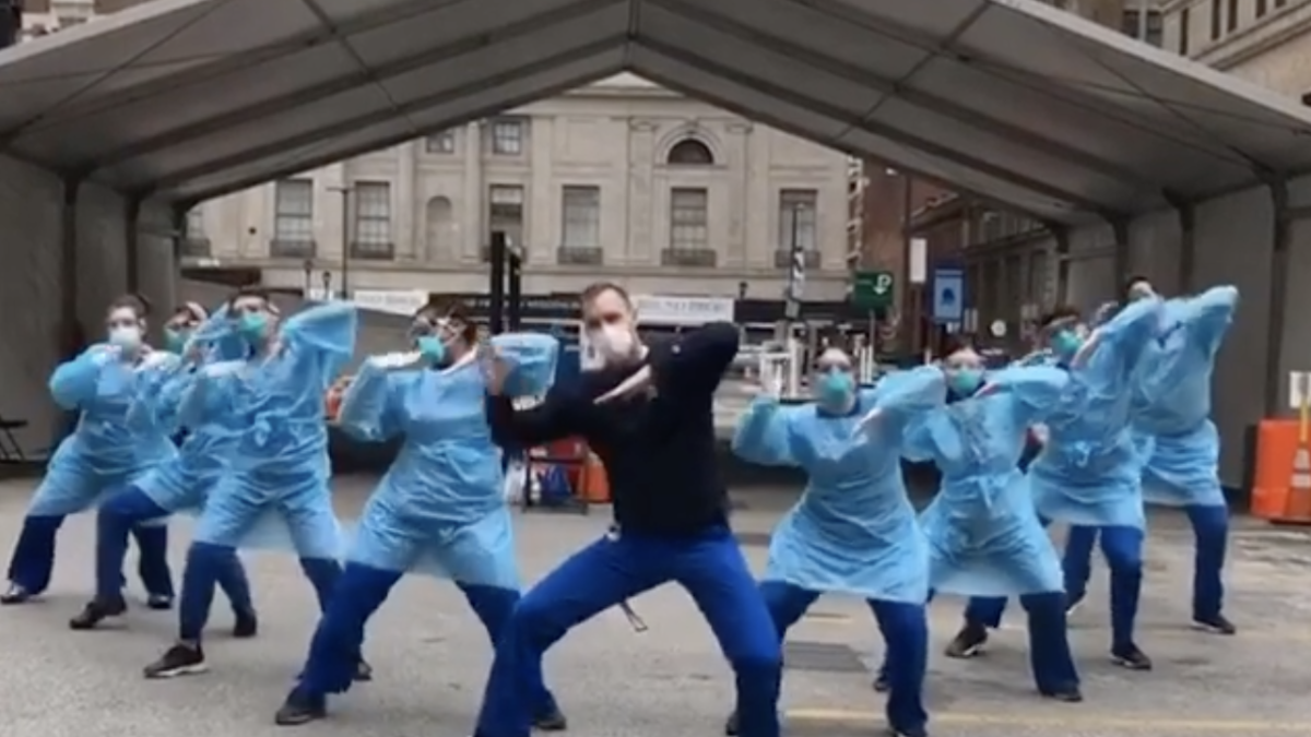 "Friendly disclaimer -- we waste no PPE. We take our jobs, our patients, and the resources we use seriously. However, we also take our team morale and mental health just as serious," the dance squad wrote on Instagram.