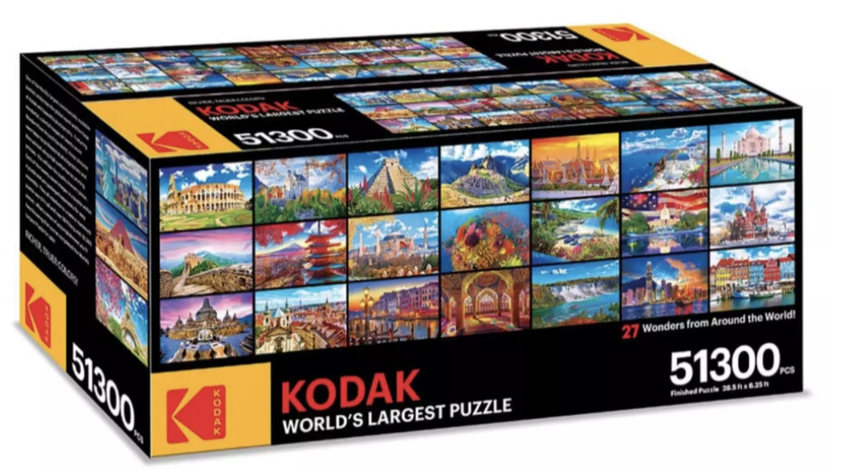 With staying at home being the new normal and people trying to keep themselves entertained Kodak is now selling The World’s Largest Jigsaw Puzzle. The photo they released shows the puzzle displaying the ’27 Wonders of the World,’ and being made of 51,300 pieces.