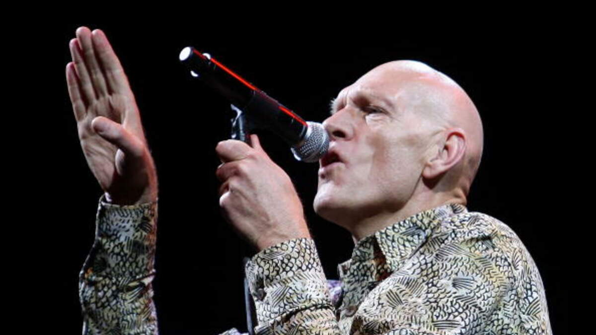2000 - Midnight Oil play their hit "Beds Are Burning" at the closing ceremony of the Summer Olympics in Sydney. Their black outfits are emblazoned with the word "sorry," a symbolic olive branch towards the Aboriginals who were forced from their lands by a government that refuses to apologize. (Photo by Lucas Dawson/Getty Images)