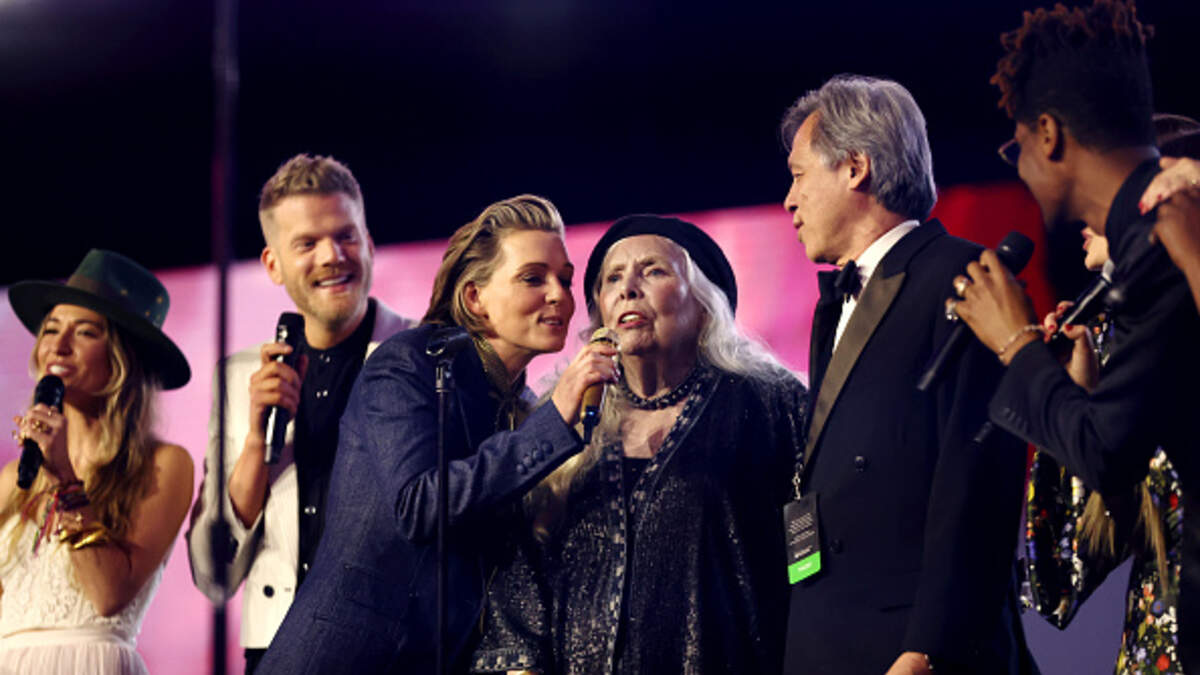 To the crowd, Carlile said, “I wanted to do Blue so I could share my energy and love with a bunch of folks like you and then collectively we could just pinch ourselves and say, we’re alive in the time of Joni Mitchell.” (Photo by Emma McIntyre/Getty Images for The Recording Academy)