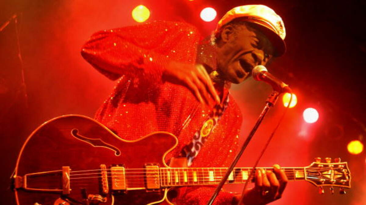 Chuck Berry is born in St. Louis, Missouri on this day in 1926. Chuck Berry is perhaps the defining musician of the early rock & roll era, the one figure responsible for the music's sound, style, and sensibility that created the blueprint for the generations that followed. A guitarist who wanted to play like T-Bone Walker and croon like Nat King Cole, Berry married these two styles to a swinging beat that spliced jump blues with juke joint R&B and hillbilly boogie -- a blend that arrived nearly fully realized with his 1955 debut single "Maybellene," a record that topped the R&B charts and crashed into the pop Top Ten. Berry was among the first musicians to be inducted into the Rock and Roll Hall of Fame on its opening in 1986, with the comment that he "laid the groundwork for not only a rock and roll sound but a rock and roll stance." (Photo credit should read MICHAL CIZEK/AFP via Getty Images)